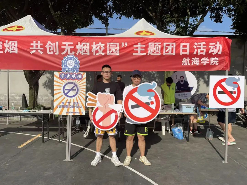 航海學(xué)院大學(xué)生自律委員會(huì)成員們通過(guò)宣傳吸煙的危害、與控?zé)熍菽搴险?、學(xué)習(xí)控?zé)熓謩?shì)舞、閱讀宣傳手冊(cè)拿禮品等方式向同學(xué)們開展無(wú)煙日宣傳活動(dòng)。