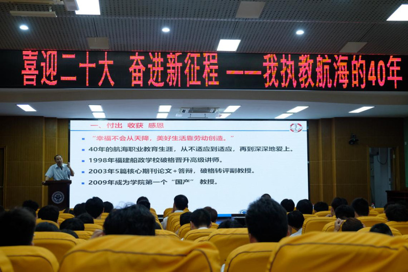 陳宏教授從自身航海執(zhí)教生涯的親身經(jīng)歷出發(fā),表達(dá)了對學(xué)校40年如一日的深厚感情,講述了他即便罹患癌癥也不離不棄的堅(jiān)守,呼吁廣大師生在平凡的崗位中用忍耐的心包容、用真誠的心待人、用堅(jiān)毅的心攻堅(jiān),做到對工作有熱愛、心中有責(zé)任,用青春書寫新時代的風(fēng)采。