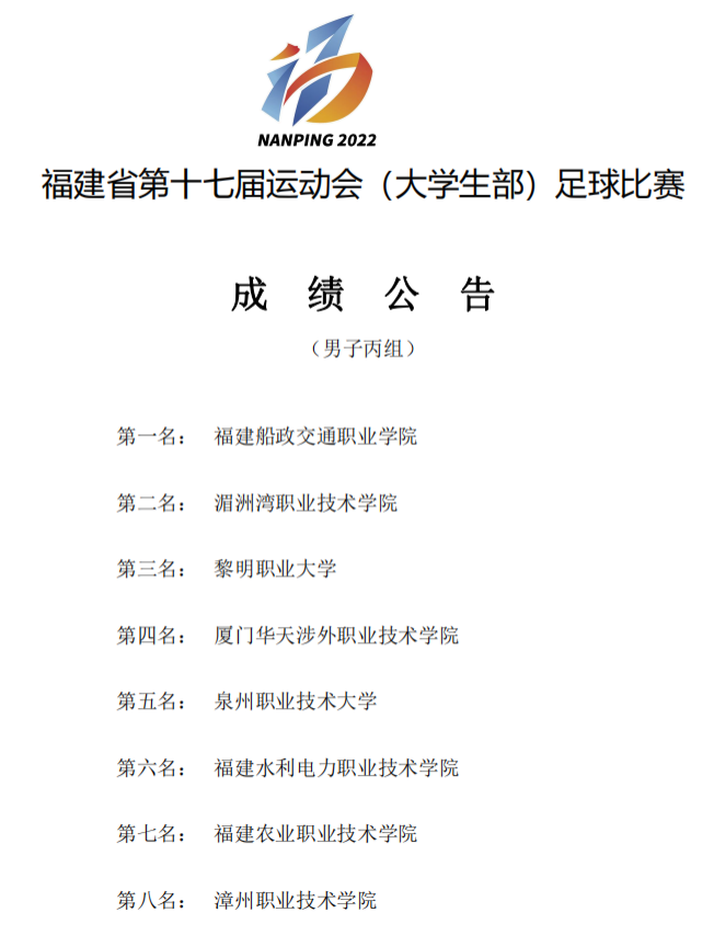 喜訊|我院榮獲福建省第十七屆運動會(大學生部)足球比賽(男子丙組)第一名