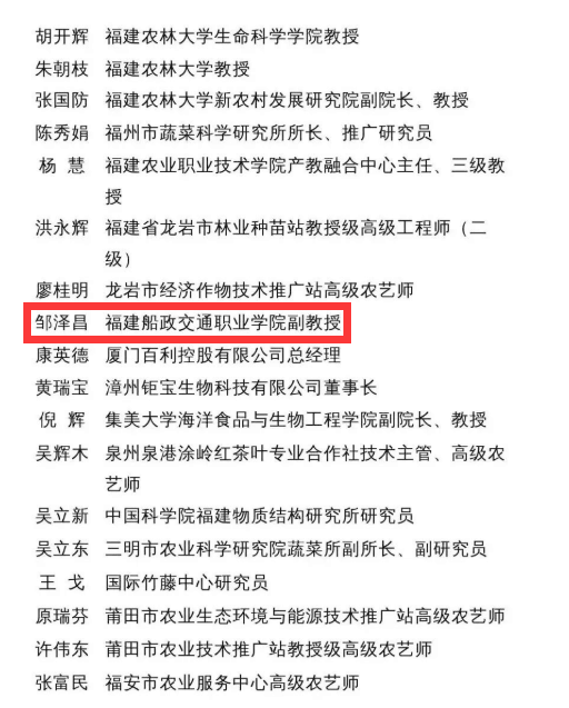發(fā)布者:發(fā)布時間:2022-08-18瀏覽次數(shù):375 8月15日,福建省科學(xué)技術(shù)廳、中共福建省委組織部、中共福建省委宣傳部、福建省發(fā)展和改革委員會、福建省教育廳、福建省財政廳、福建省人力資源和社會保障廳、福建省農(nóng)業(yè)農(nóng)村廳聯(lián)合發(fā)布《關(guān)于公布福建省“最美科技特派員”名單的通知》,我院鄒澤昌副教授上榜。
