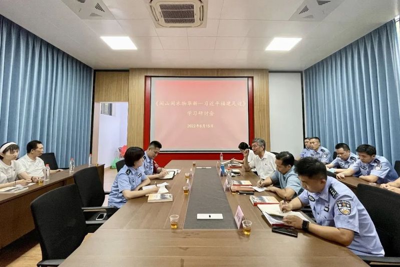 參觀結(jié)束后,在漳州110警員之家開展《閩山閩水物華新——習(xí)近平福建足跡》學(xué)習(xí)交流研討,由公安廳團(tuán)委負(fù)責(zé)人導(dǎo)讀學(xué)習(xí),110大隊(duì)長介紹110有關(guān)情況,黃永忠常務(wù)副主任、張祖柱副院長、我院圖書館館長、漳州市公安局團(tuán)委書記及公安廳青年民警逐一做交流研討。