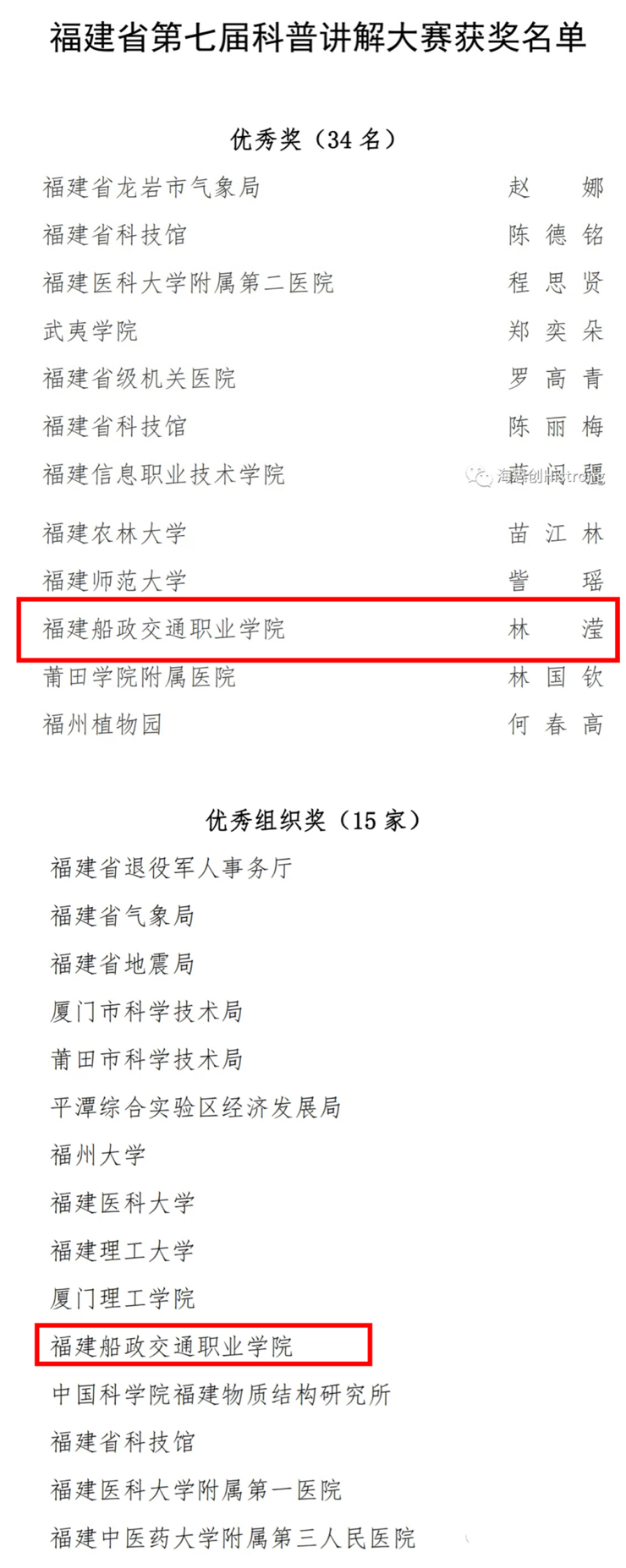 此次比賽共有來自我省60個單位、63名選手報名參賽,與往屆相比,今年參加科普講解大賽的選手來源更加廣泛,講解內容更加豐富,表達形式更加多樣。63位選手涉及專業(yè)播音員、科研工作者、教師、醫(yī)生、講解員、公務員、學生、科普志愿者等多個行業(yè),講解主題涵蓋多個領域。本屆大賽通過參賽選手自主命題講解和科技常識問答,主辦方組織評委現場評選的方式進行。比賽中,安全與環(huán)境學院教師林瀅準備充分,沉著應對,最終摘獲優(yōu)秀獎的好成績,展現了船政交通人良好的業(yè)務素養(yǎng)和極佳的精神風貌。