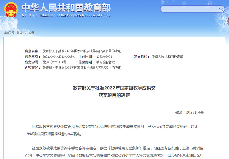 國(guó)家級(jí)教學(xué)成果獎(jiǎng)是我國(guó)教育領(lǐng)域政府層面的最高獎(jiǎng)勵(lì),旨在獎(jiǎng)勵(lì)在教育教學(xué)研究中取得顯著成果的集體和個(gè)人,鼓勵(lì)教育工作者不斷提高教學(xué)水平和教育質(zhì)量。我校再次獲得三項(xiàng)二等獎(jiǎng),充分彰顯了我校堅(jiān)持以習(xí)近平新時(shí)代中國(guó)特色社會(huì)主義思想為指導(dǎo),落實(shí)立德樹人根本任務(wù),以提高人才培養(yǎng)質(zhì)量為核心,不斷深化內(nèi)涵建設(shè)所取得的優(yōu)異成果。
