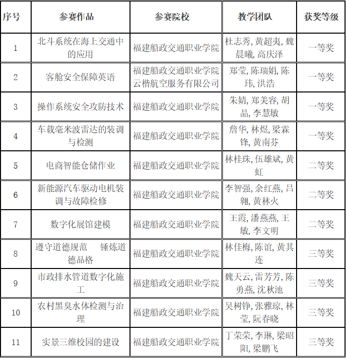 2023年福建省職業(yè)院校技能大賽教學(xué)能力比賽我校獲獎(jiǎng)名單匯總表