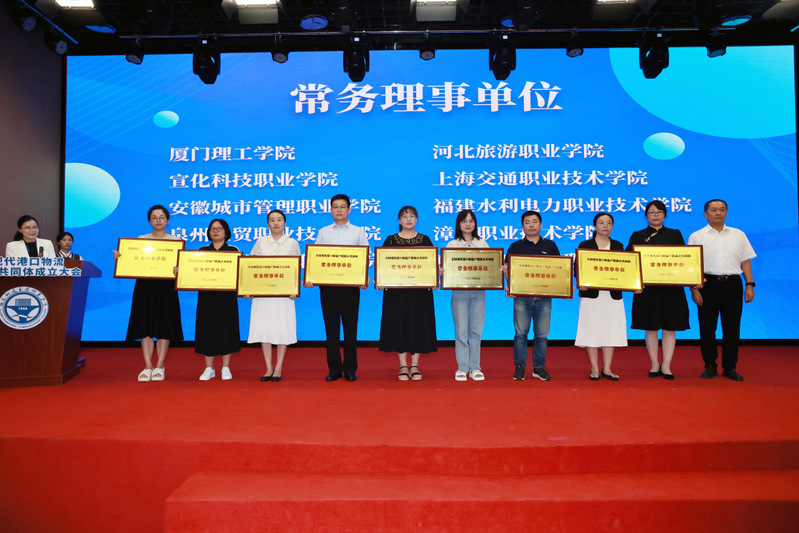 會上,對全國現(xiàn)代港口物流產(chǎn)教融合共同體指導(dǎo)單位、福建船政交通職業(yè)學(xué)院等5家輪值理事長單位、福建八方物流股份有限公司等10家副理事長單位、上海交通職業(yè)技術(shù)學(xué)院等20家常務(wù)理事單位、福州理工學(xué)院等36家理事單位進(jìn)行授牌。