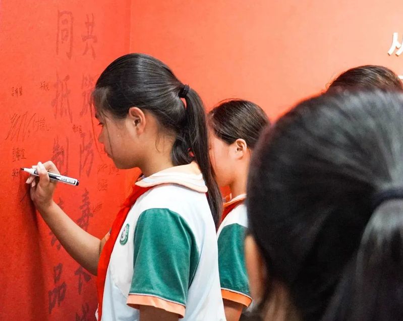 大家在“禁毒簽名墻”上鄭重簽字。