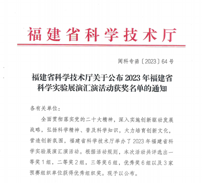 近日,由福建省科學(xué)技術(shù)廳主辦的首屆“福建省科學(xué)實(shí)驗(yàn)展演匯演大賽”決賽在福州舉行,我院科技處選送的安全與環(huán)境學(xué)院作品“面粉塵爆炸”科普實(shí)驗(yàn)項(xiàng)目榮獲三等獎(jiǎng),學(xué)院榮獲優(yōu)秀組織獎(jiǎng)。