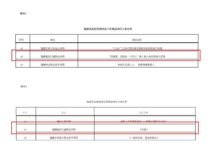 近日,中共福建省委教育工委公布了2023年福建省高校思想政治工作質(zhì)量提升綜合改革與精品建設(shè)項(xiàng)目入選名單,我院“‘四維度·五聯(lián)動(dòng)·六開(kāi)心’育人育心體系探索與實(shí)踐”、原創(chuàng)話劇《赤海》2個(gè)項(xiàng)目名列其中。