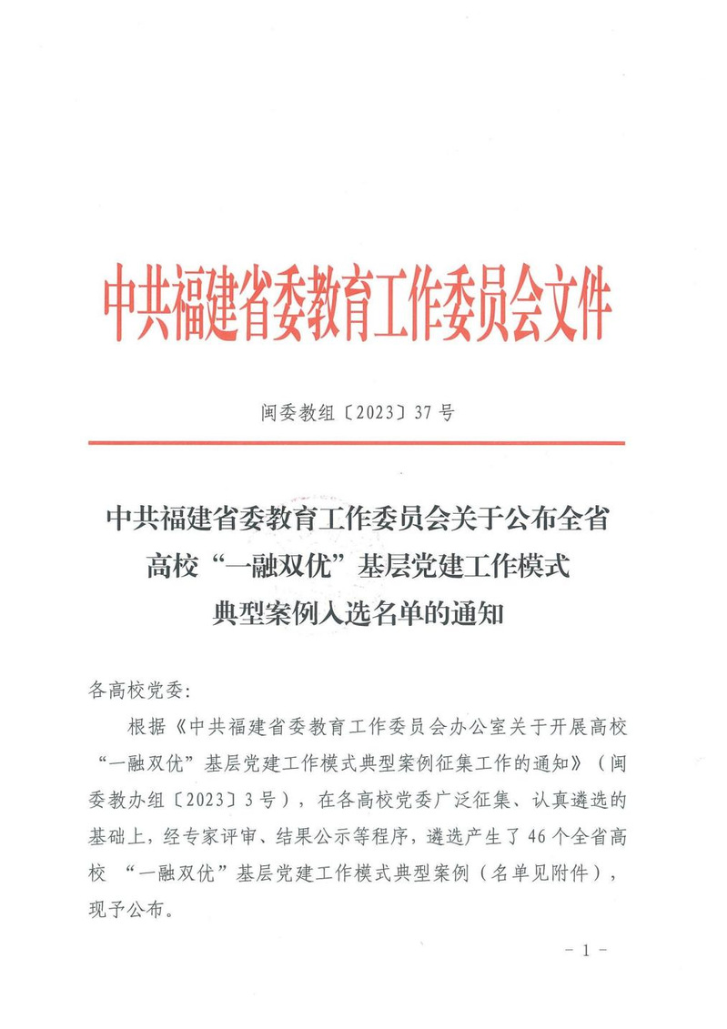 發(fā)布者:發(fā)布時(shí)間:2023-11-24瀏覽次數(shù):201 近日,省委教育工委公布全省高校“一融雙優(yōu)”基層黨建工作模式典型案例入選名單。我院黨委選送的《黨建領(lǐng)航 思政鑄魂“一經(jīng)一緯”織就“三課堂”育人之路》入選高職高專組基層黨組織“一融雙優(yōu)”工作案例,《基層黨總支創(chuàng)新“1-2-4”雙培工作機(jī)制 著力讓一批優(yōu)秀學(xué)生成為優(yōu)秀黨員骨干群體》入選高職高專組師生黨員“雙培”工作案例。