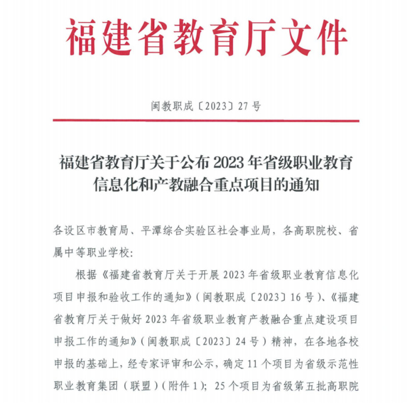 近日,福建省教育廳下發(fā)《福建省教育廳關(guān)于公布2023年省級職業(yè)教育信息化和產(chǎn)教融合重點(diǎn)項(xiàng)目的通知》文件,我院共有124個項(xiàng)目成功獲批2023年省級職業(yè)教育信息化和產(chǎn)教融合重點(diǎn)項(xiàng)目。