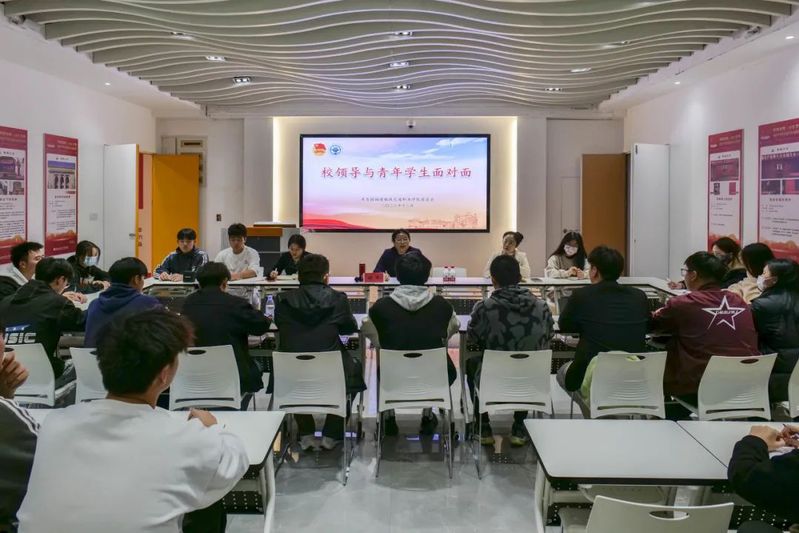 12.6日下午,學(xué)院團(tuán)委在福道園鑒知樓黨建思政館舉行學(xué)院領(lǐng)導(dǎo)與青年學(xué)生面對面座談交流會(huì)。學(xué)院黨委委員、紀(jì)委書記張輝,學(xué)院團(tuán)委班子成員、學(xué)生會(huì)全體工作人員、二級(jí)學(xué)院學(xué)生會(huì)主席團(tuán)成員等近60人參加會(huì)議,會(huì)議由學(xué)院團(tuán)委書記陳慧主持。