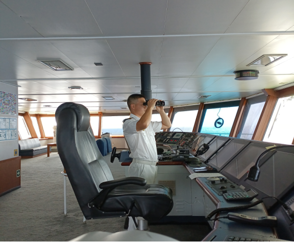 陳曉凌老師在船擔(dān)任駕駛員職務(wù),他以飽滿的熱情、務(wù)實的作風(fēng)、精湛的專業(yè)知識對駕駛臺航行值班以及甲板設(shè)備保養(yǎng)任務(wù)提供了出色的保障,在本次南極考察隊中各方面表現(xiàn)優(yōu)秀,獲得考察隊領(lǐng)導(dǎo)、船領(lǐng)導(dǎo)和同事們的一致好評。