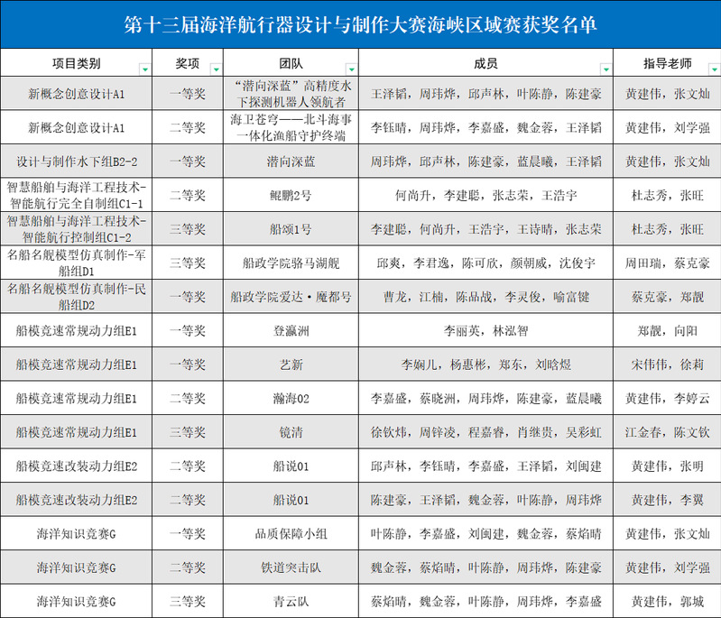 近日,由中國造船工程學(xué)會主辦、集美大學(xué)承辦的第十三屆全國海洋航行器設(shè)計與制作大賽(海峽賽區(qū))圓滿結(jié)束。經(jīng)過線上、線下兩種方式激烈角逐,我院師生憑借卓越的技術(shù)實力和專業(yè)素養(yǎng)脫穎而出,斬獲一等獎6項、二等獎6項、三等獎4項的佳績。其中,在船模競速常規(guī)動力組(E1)的20支隊伍中,包攬前2!共有20支隊伍順利入圍國賽。