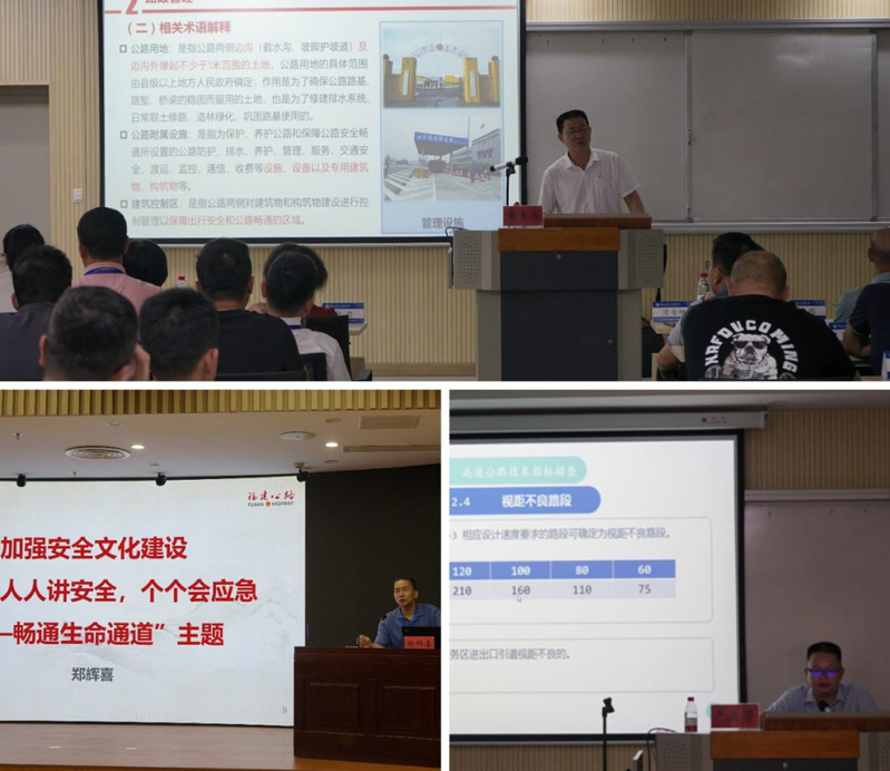 此次培訓(xùn)內(nèi)容豐富,形式多樣。邀請到了福建省交通運(yùn)輸廳綜合執(zhí)法監(jiān)督局四級調(diào)研員黃生存、原省公路事業(yè)發(fā)展中心副主任鄭輝喜、福建省應(yīng)急管理專家嚴(yán)益芳為學(xué)員們做專題講座。內(nèi)容涵蓋福建省路政管理(執(zhí)法)體制介紹、執(zhí)法安全防護(hù)、高速公路安全隱患排查等方面。除專題講座外,還前往福建省高速公路路網(wǎng)監(jiān)控指揮中心、青云山服務(wù)區(qū)等單位進(jìn)行現(xiàn)場教學(xué)及業(yè)務(wù)交流。
