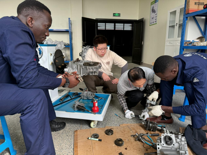 “職教出海”是職業(yè)教育服務(wù)大國外交與國際產(chǎn)能合作的有效路徑,融匯了東方古老智慧與工匠精神,搭建的是民心相通、文明互鑒的橋梁。汽車學(xué)院在“職教出?!卑l(fā)展路線上始終堅(jiān)持高質(zhì)量、品牌化、可持續(xù),在發(fā)展目標(biāo)上逐步從“建成”向“辦好”轉(zhuǎn)移。堅(jiān)定不移的促進(jìn)中國教育標(biāo)準(zhǔn)、方案、模式和制度的“走出去”與“融進(jìn)去”,與“一帶一路”共建國家共享中國的職教經(jīng)驗(yàn),通過促進(jìn)技術(shù)進(jìn)步與人力資源發(fā)展,支持各國增強(qiáng)自主發(fā)展能力,為構(gòu)建人類命運(yùn)共同體作出積極貢獻(xiàn)。2018年以來,汽車學(xué)院積極踐行“一帶一路”倡議,先后指導(dǎo)肯尼亞、加蓬、科特迪瓦等非洲國家創(chuàng)辦汽車專業(yè)并開展師資培訓(xùn),專門制定適應(yīng)當(dāng)?shù)卦盒P枰钠噷I(yè)建設(shè)標(biāo)準(zhǔn)、實(shí)驗(yàn)實(shí)訓(xùn)條件建設(shè)標(biāo)準(zhǔn)、課程標(biāo)準(zhǔn),中英文教材及教學(xué)資源、中法文教材及教學(xué)資源。