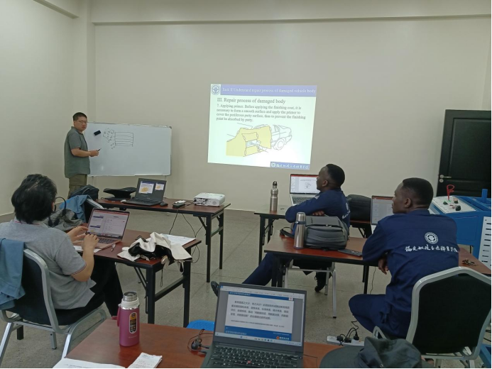 2024年6至11月,學(xué)院職教出海選派的優(yōu)秀師資團(tuán)隊(duì)黃林火、張宇峰兩位教師再次啟程,跨越萬里,從福建到非洲大陸,他們揚(yáng)帆出海,乘勢而上,持續(xù)向世界輸送“船政模式”職業(yè)教育品牌,圓滿完成了為期半年的烏干達(dá)汽車專業(yè)骨干師資培訓(xùn)。團(tuán)隊(duì)因“國”制宜,制定適應(yīng)當(dāng)?shù)卦盒P枰钠噷I(yè)建設(shè)標(biāo)準(zhǔn)、實(shí)驗(yàn)實(shí)訓(xùn)條件建設(shè)標(biāo)準(zhǔn),精心設(shè)計(jì)汽車發(fā)動(dòng)機(jī)構(gòu)造與維修、汽車底盤構(gòu)造與維修、汽車電氣設(shè)備構(gòu)造與維修等9門課程標(biāo)準(zhǔn),并高質(zhì)量完成680課時(shí)的汽車技術(shù)培訓(xùn),輸出了一套國際化汽車維修專業(yè)職業(yè)教育標(biāo)準(zhǔn)。