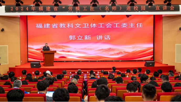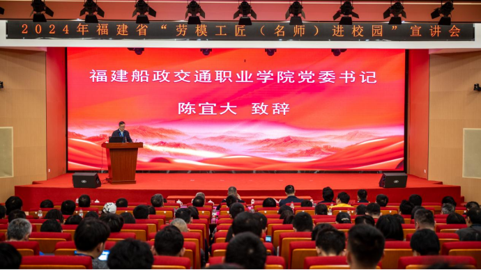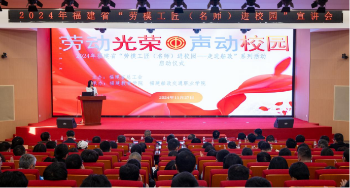 11月27日下午,主題為“勞動(dòng)光榮·聲動(dòng)校園”----2024 年福建省“勞模工匠(名師)進(jìn)校園”系列活動(dòng)---走進(jìn)福建船政交通職業(yè)學(xué)院的活動(dòng)在我院隆重舉行。本次活動(dòng)由福建省總工會(huì)主辦,福建教育學(xué)院和我院共同承辦。省教科文衛(wèi)體工會(huì)工委主任郭立新、省教科文衛(wèi)體工會(huì)工委二級(jí)調(diào)研員左修坤、福建教育學(xué)院宣傳部部長(zhǎng)、工會(huì)常務(wù)副主席范光基,學(xué)院黨委書記陳宜大,黨委委員、紀(jì)委書記張輝,黨委委員、副院長(zhǎng)陳艷紅出席了本次活動(dòng),近300名師生代表參加活動(dòng)。