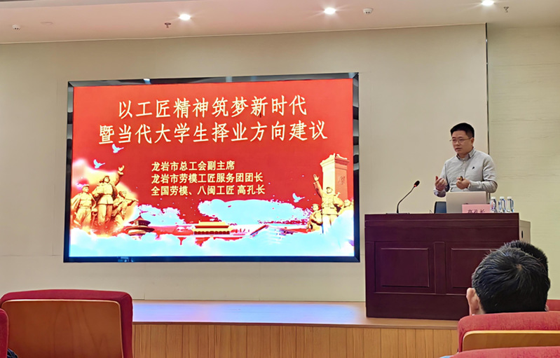 為深入學(xué)習(xí)宣傳貫徹黨的二十屆三中全會(huì)精神,大力弘揚(yáng)勞模精神、勞動(dòng)精神和工匠精神,引導(dǎo)廣大師生牢固樹立正確的人生觀、價(jià)值觀和勞動(dòng)觀,12月4日下午,汽車學(xué)院在福船園藝新樓304會(huì)議室舉行“勞動(dòng)光榮·聲動(dòng)校園”2024年福建省“勞模工匠(名師)進(jìn)校園---走進(jìn)船政”系列活動(dòng),本次活動(dòng)邀請(qǐng)到全國勞動(dòng)模范、享受國務(wù)院政府特殊津貼專家、福建新龍馬汽車股份有限公司高孔長先生作主題為《以工匠精神筑夢(mèng)新時(shí)代暨當(dāng)代大學(xué)生擇業(yè)方向建議》的專題講座,汽車學(xué)院全體教職工和學(xué)生百余人參加。