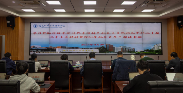 為進(jìn)一步做好機(jī)關(guān)科級(jí)干部學(xué)習(xí)貫徹黨的二十屆三中全會(huì)精神、全國(guó)教育大會(huì)精神及習(xí)近平總書(shū)記在福建考察時(shí)的重要講話精神教育培訓(xùn),機(jī)關(guān)黨總支按照上級(jí)和學(xué)院有關(guān)工作要求,結(jié)合機(jī)關(guān)青年干部讀書(shū)班開(kāi)展專題學(xué)習(xí)培訓(xùn)。