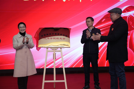 陳艷紅、陳炎生、魏禮全、蘇慶列共同為“福建船政交通職業(yè)學(xué)院汽車學(xué)院校友會(huì)”揭牌。