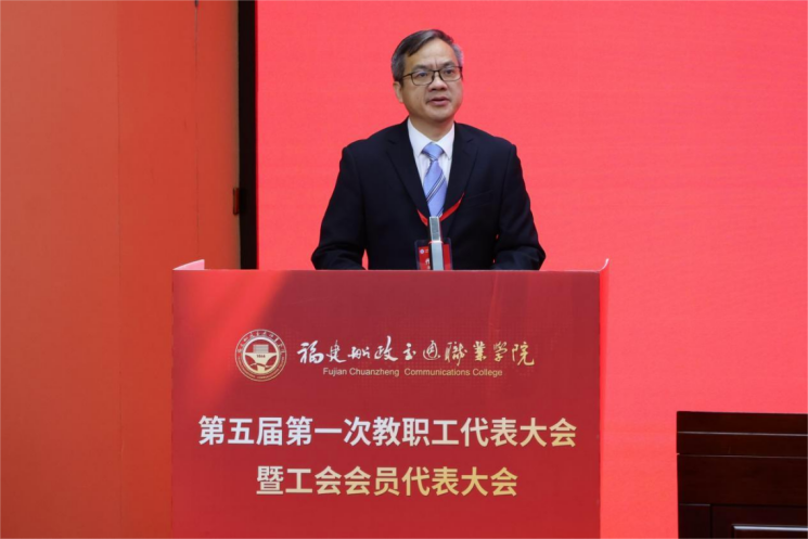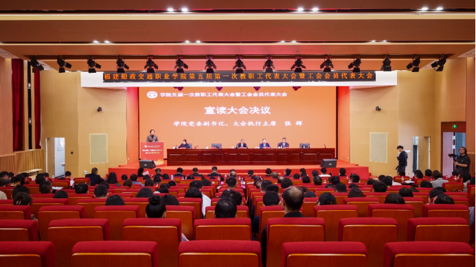 3月13日上午,福建船政交通職業(yè)學(xué)院第五屆第一次教職工代表大會暨工會會員代表大會在福船園藝新樓331報(bào)告廳順利舉行。本次會議是在學(xué)院深入學(xué)習(xí)宣傳貫徹全國“兩會”精神和全國、全省教育大會精神,“十四五”規(guī)劃全面收官、“十五五”規(guī)劃謀篇布局,深化綜合改革的關(guān)鍵時(shí)期召開的一次重要會議。福建省教科文衛(wèi)體工會工委主任郭立新、副主任陽先輝,學(xué)院黨委書記陳宜大,黨委副書記、院長陳錦輝,黨委副書記張輝,黨委委員、副院長陳艷紅,副院長陳常暉出席會議,正式代表、列席代表共200多人參加會議。會議由學(xué)院黨委委員、副院長陳艷紅主持。