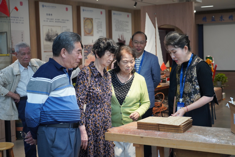 交流結束后,船政后裔一行參觀了學院校史館,在一幅幅珍貴的歷史圖片、一件件實物展品前,駐足聆聽講解,重溫先輩們投身船政事業(yè)的崢嶸歲月,感受學院百年辦學的深厚底蘊,并現(xiàn)場提供了自己撰寫的船政先賢事跡手稿。他們紛紛表示愿意通過捐贈、復制等方式,向我院校史館提供更多先人前輩的物件等紀念品。