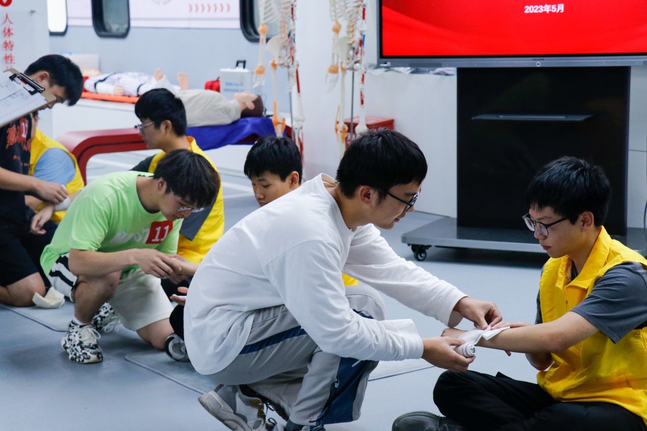 5月17日下午,在安全與環(huán)境學院公共安全產(chǎn)教融合實訓基地舉行了應急救護技能競賽決賽。決賽分為兩個環(huán)節(jié),第一個環(huán)節(jié)為心肺復蘇的基本技能操作;第二個環(huán)節(jié)為左前臂創(chuàng)傷包扎技能操作。要求在操作過程中傷情處置符合急救操作規(guī)范。
