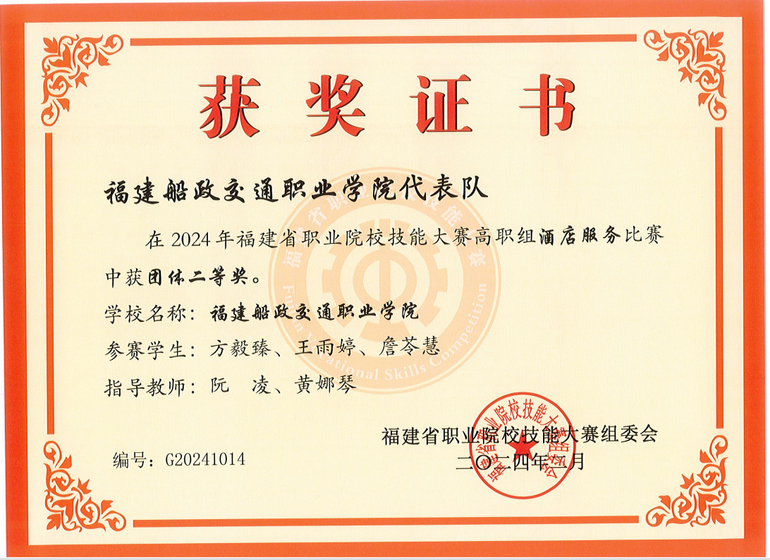 在福建省職業(yè)院校技能大賽中,蟬聯高職組酒店服務比賽、研學旅行比賽及酒水服務比賽等多個賽項獎項;