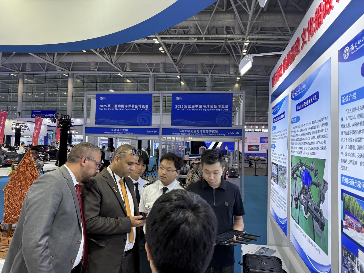 我院受邀參展并在主賓館設(shè)立展區(qū),重點展示了一系列兼具技術(shù)實力與應(yīng)用價值的成果:包括傳承船政文化的趕繒船結(jié)構(gòu)復(fù)原模型,聚焦智能裝備領(lǐng)域的 AIS 交通流分析系統(tǒng)、Ener16p 農(nóng)業(yè)植保無人機、無人機協(xié)同指揮系統(tǒng)、橋梁無人機巡檢及 AI 病害識別系統(tǒng),深耕大數(shù)據(jù)應(yīng)用的福建省交通基礎(chǔ)設(shè)施大數(shù)據(jù)平臺,以及榮獲國家級教學成果獎的《新船政學堂:燈塔型航海人才雙適任育訓(xùn)范式創(chuàng)新實踐》項目。豐富多元的展品吸引了眾多參會觀眾駐足咨詢、互動體驗并拍照記錄。展區(qū)內(nèi)的茶藝展示區(qū)更是成為交流熱點,專家學者們在品茗暢談間,圍繞航海類專業(yè)人才培養(yǎng)、船政文化傳承創(chuàng)新、區(qū)域海洋裝備產(chǎn)業(yè)升級、國際人才聯(lián)合培育等關(guān)鍵議題展開深度研討。展覽期間,我院的辦學成果與特色展品獲得多家官方媒體及自媒體的關(guān)注與宣傳報道,有效提升了學院的行業(yè)影響力與社會知名度。