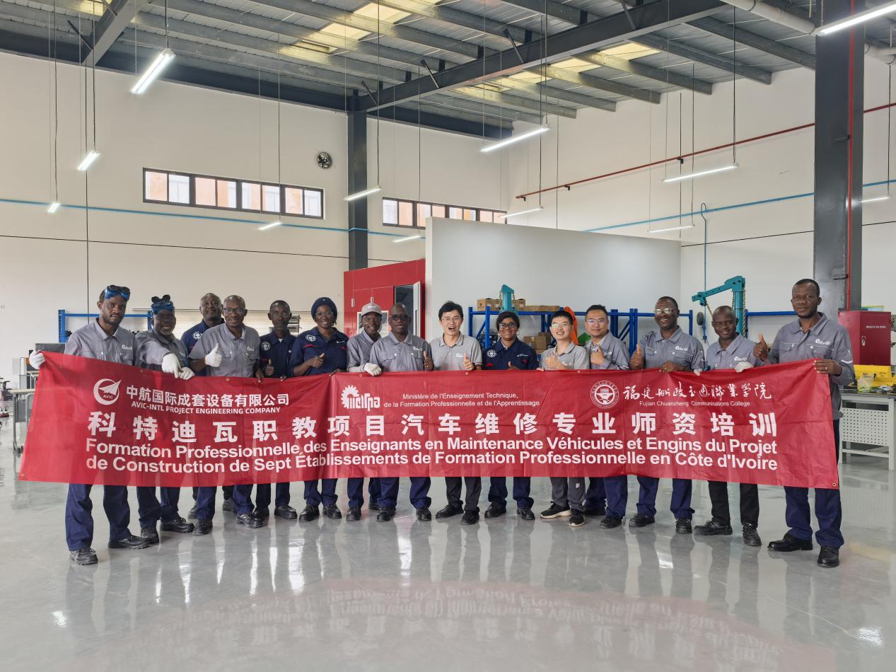 2023年9月至2024年1月,學(xué)院已出色完成中航科創(chuàng)成套公司(以下簡(jiǎn)稱“中航成套”)科特迪瓦職教項(xiàng)目汽修專業(yè)在國(guó)內(nèi)為期4個(gè)月的師資培訓(xùn)。2025年6至10月,我院教師團(tuán)隊(duì)再次揚(yáng)帆啟航、跨越萬(wàn)里,遠(yuǎn)赴科特迪瓦首都阿比讓ABOBO校區(qū),輸送“船政模式”職業(yè)教育品牌,圓滿完成了中航成套為期4個(gè)月的科特迪瓦職教項(xiàng)目汽車維修專業(yè)海外師資培訓(xùn)。我院精心選派了梁霖鋒、張光葳和陳星三位既精通汽車前沿技術(shù)又富有教學(xué)經(jīng)驗(yàn)的骨干教師,組成專家團(tuán)隊(duì)“送教上門(mén)”,培訓(xùn)面向科特迪瓦當(dāng)?shù)囟嗨殬I(yè)院校的14名教師,團(tuán)隊(duì)克服當(dāng)?shù)貤l件限制,遇山開(kāi)路、遇水架橋,創(chuàng)造性地采用了“培訓(xùn)+調(diào)研+標(biāo)準(zhǔn)開(kāi)發(fā)”的融合式方法,確保了培訓(xùn)的高質(zhì)量與實(shí)用性??铺氐贤邍?guó)家最大的教育媒體JDMag刊發(fā)結(jié)業(yè)典禮報(bào)道,對(duì)專家團(tuán)隊(duì)精湛的專業(yè)技能和無(wú)私的奉獻(xiàn)精神給予了高度贊譽(yù)。