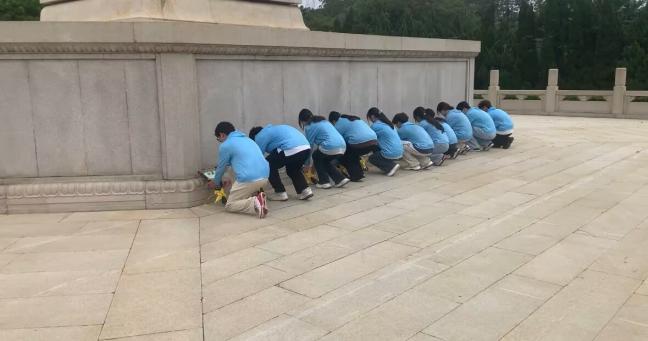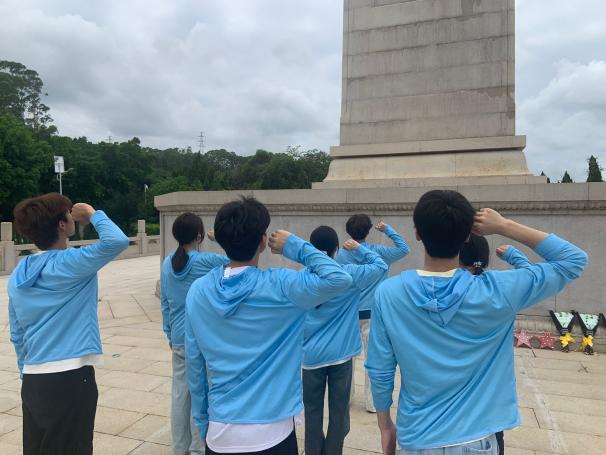 在蒼松翠柏掩映的泉州市革命烈士陵園,實踐團成員手持白菊,肅立于巍峨的紀(jì)念碑前。晨光中,花崗巖碑體上鐫刻的鎏金大字熠熠生輝,成員們俯身輕拭碑座,讓那些承載著光榮與犧牲的名字重現(xiàn)光芒。在"赤膽忠心"主題浮雕墻前,帶隊老師講述著1949年解放泉州戰(zhàn)役中,27名年輕戰(zhàn)士為掩護群眾轉(zhuǎn)移而壯烈犧牲的事跡。微風(fēng)拂過,潔白的花瓣輕輕飄落在長青灌木叢間,成員們面向紀(jì)念碑深深鞠躬,用無聲的致敬完成這場跨越時空的精神對話。