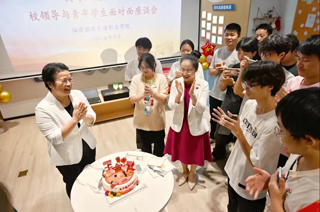 在青年之家,同學(xué)們圍繞專業(yè)發(fā)展、擇業(yè)方向、個人規(guī)劃及校園生活等話題踴躍發(fā)言;學(xué)院黨委副書記張輝與學(xué)院團(tuán)委書記陳慧認(rèn)真傾聽,對同學(xué)們提出的困惑逐一進(jìn)行詳細(xì)解答并開展深入交流。座談會上,張輝副書記與師生們共同為新中國成立76周年慶生,師生們高聲祝?!白鎳湛鞓贰保F(xiàn)場氣氛高漲,溫馨的一幕為座談會畫上了圓滿的句號。