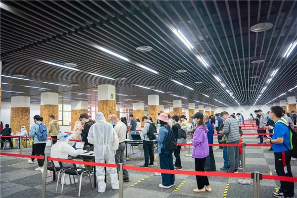 根據(jù)屬地要求,從3月13日晚開(kāi)始至3月14日凌晨華僑大學(xué)連夜完成對(duì)泉州校區(qū)全體在校師生員工及校區(qū)范圍內(nèi)的其他人員的核酸檢測(cè)。為保證檢測(cè)過(guò)程的安全和秩序,各部門(mén)迅速行動(dòng),全體師生積極配合,參檢人員自覺(jué)間隔一米排隊(duì),提前準(zhǔn)備好身份證登記信息,并在檢測(cè)完成后迅速離場(chǎng)。