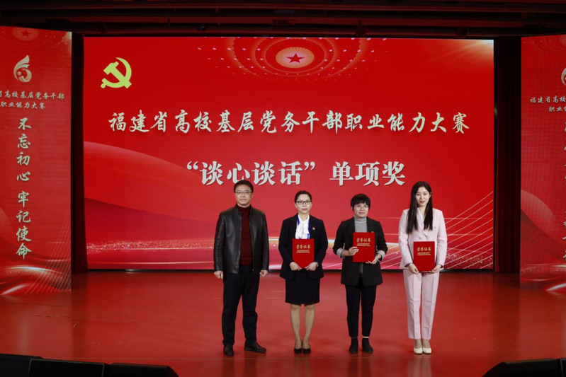 12月13日,在全省高?;鶎狱h務(wù)干部職業(yè)能力大賽上,我校參賽代表隊(duì)榮獲高職組團(tuán)體一等獎(jiǎng)。黃奕主講的《堅(jiān)守信仰的青春最美麗》黨課以92.1的高分榮獲“微黨課”賽項(xiàng)全省第一名;欒靜在“談心談話”賽項(xiàng)中精密構(gòu)思、沉穩(wěn)應(yīng)對(duì),以90.8的高分榮獲高職組第二名。