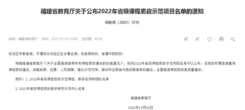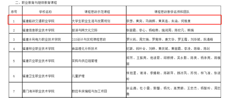 近日,福建省教育廳公布了2022年省級(jí)課程思政示范項(xiàng)目名單,我校推薦申報(bào)的《大學(xué)生職業(yè)生涯與發(fā)展規(guī)劃》課程和教學(xué)團(tuán)隊(duì)入選2022年省級(jí)課程思政示范課程、教學(xué)名師和團(tuán)隊(duì)。這是我校繼去年《船政文化》《客艙乘務(wù)英語聽說》入選省級(jí)課程思政示范課程項(xiàng)目、課程思政教學(xué)研究中心入選省級(jí)課程思政教學(xué)研究示范中心項(xiàng)目之后又一重要成果。