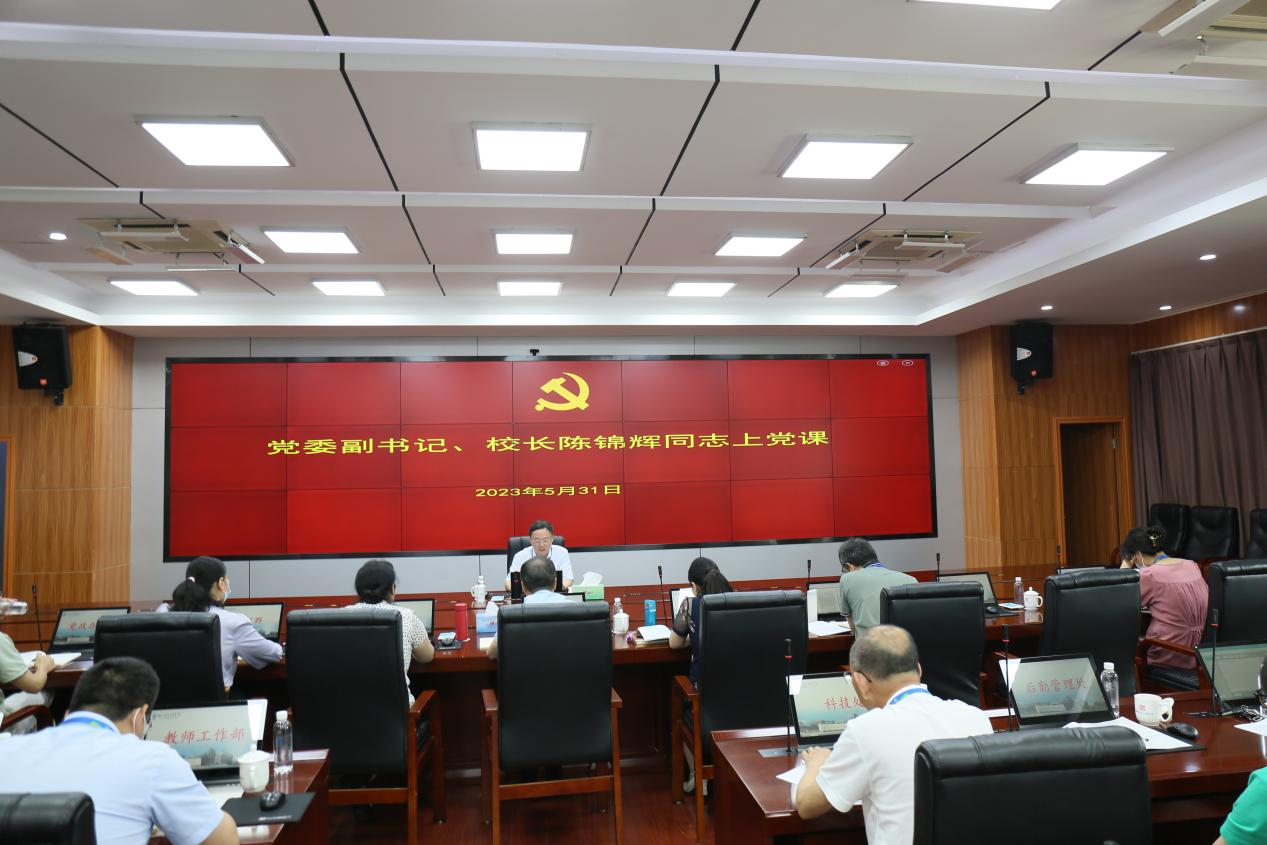 5月31日上午,校黨委副書(shū)記、校長(zhǎng)陳錦輝以《感悟思想偉力 凝聚奮進(jìn)力量》為題,講授主題教育專(zhuān)題黨課。省委教育工委、省教育廳主題教育協(xié)調(diào)推進(jìn)一組聯(lián)絡(luò)員柯益群蒞校指導(dǎo),學(xué)校黨委理論學(xué)習(xí)中心組成員及安全與環(huán)境學(xué)院黨總支黨員代表參加學(xué)習(xí)。