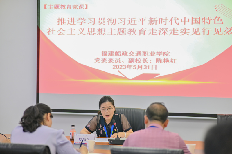 5月31日下午,校黨委委員、副校長(zhǎng)陳艷紅以《推進(jìn)學(xué)習(xí)貫徹習(xí)近平新時(shí)代中國(guó)特色社會(huì)主義思想主題教育走深走實(shí)見(jiàn)行見(jiàn)效》為題,講授主題教育專題黨課。省委教育工委、省教育廳主題教育協(xié)調(diào)推進(jìn)一組聯(lián)絡(luò)員柯益群蒞校指導(dǎo),航海學(xué)院、經(jīng)濟(jì)與管理學(xué)院黨總支師生黨員、學(xué)生代表參加學(xué)習(xí)。