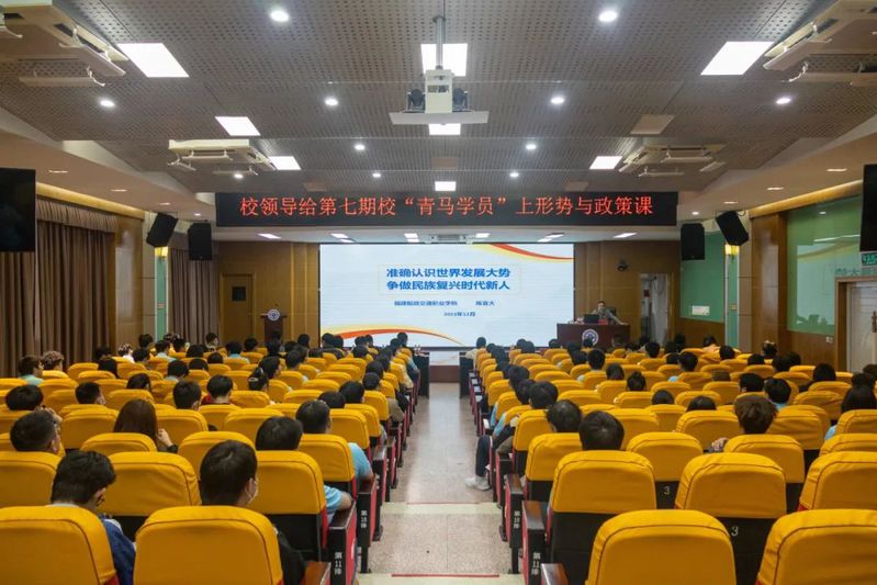 12月14日晚,我院黨委書記陳宜大在福道園行政樓學(xué)術(shù)報告廳為我院第七期“青馬學(xué)員”講授《準(zhǔn)確認(rèn)識世界發(fā)展大勢,爭做民族復(fù)興時代新人》的專題形勢與政策課。組織部、宣傳統(tǒng)戰(zhàn)部、學(xué)生工作部、團委、馬克思主義學(xué)院等我院團員和青年主題教育副組長單位負(fù)責(zé)人、各二級學(xué)院分團委負(fù)責(zé)人、馬克思主義學(xué)院教師、青馬班學(xué)員參加講座。講座由院團委書記陳慧主持。