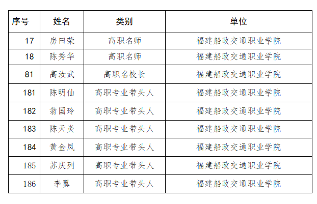 名師名校長和專業(yè)帶頭人名單