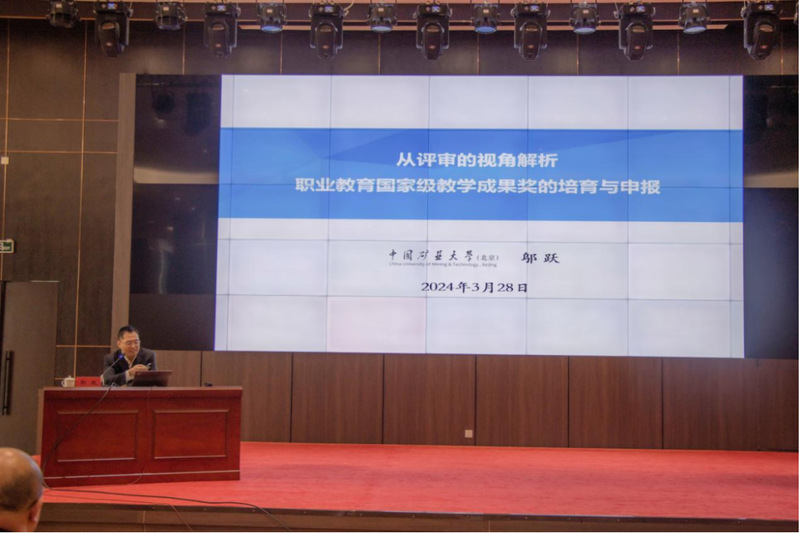 鄔躍作“從評審的視角解析職業(yè)教育國家級教學(xué)成果獎的培育與申報”的主題報告