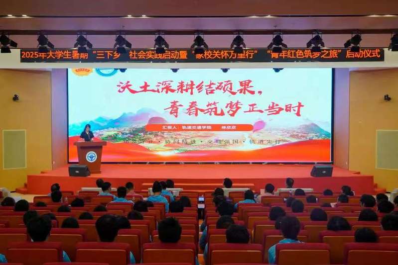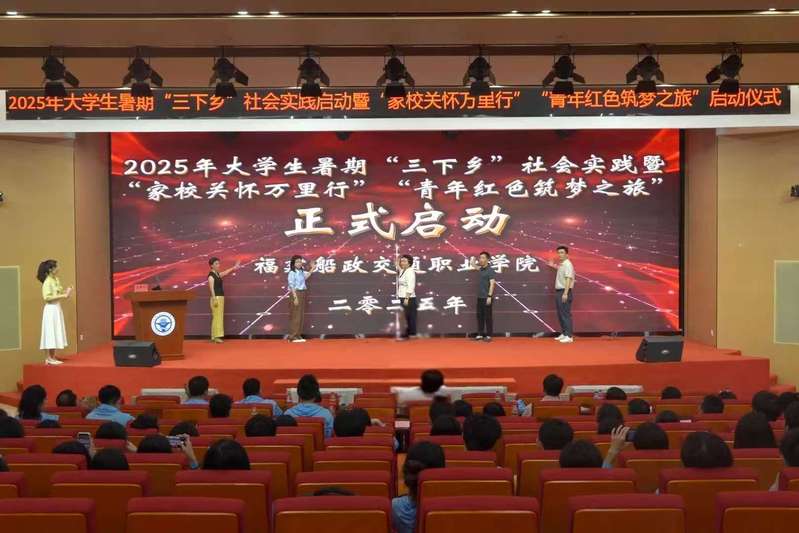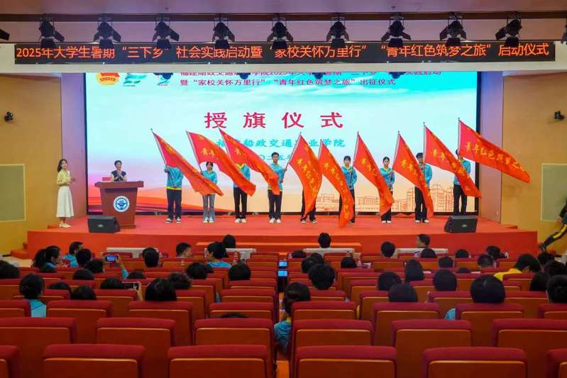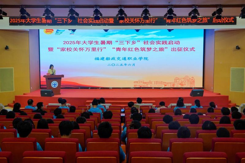 6月25日下午,福建船政交通職業(yè)學(xué)院2025年大學(xué)生暑期“三下鄉(xiāng)”社會實踐啟動暨 “家校關(guān)懷萬里行”“青年紅色筑夢之旅”出征儀式在福船園藝新樓331報告廳舉行。學(xué)院黨委副書記張輝,黨委宣傳統(tǒng)戰(zhàn)部、學(xué)生工作部、團(tuán)委、創(chuàng)新創(chuàng)業(yè)學(xué)院、馬克思主義學(xué)院等相關(guān)職能部門、二級學(xué)院,以及參加大學(xué)生暑期“三下鄉(xiāng)”社會實踐“家校關(guān)懷萬里行”“青年紅色筑夢之旅”的師生代表們參加出征儀式。儀式由學(xué)院團(tuán)委學(xué)生社團(tuán)管理部部長湯曉玲主持。