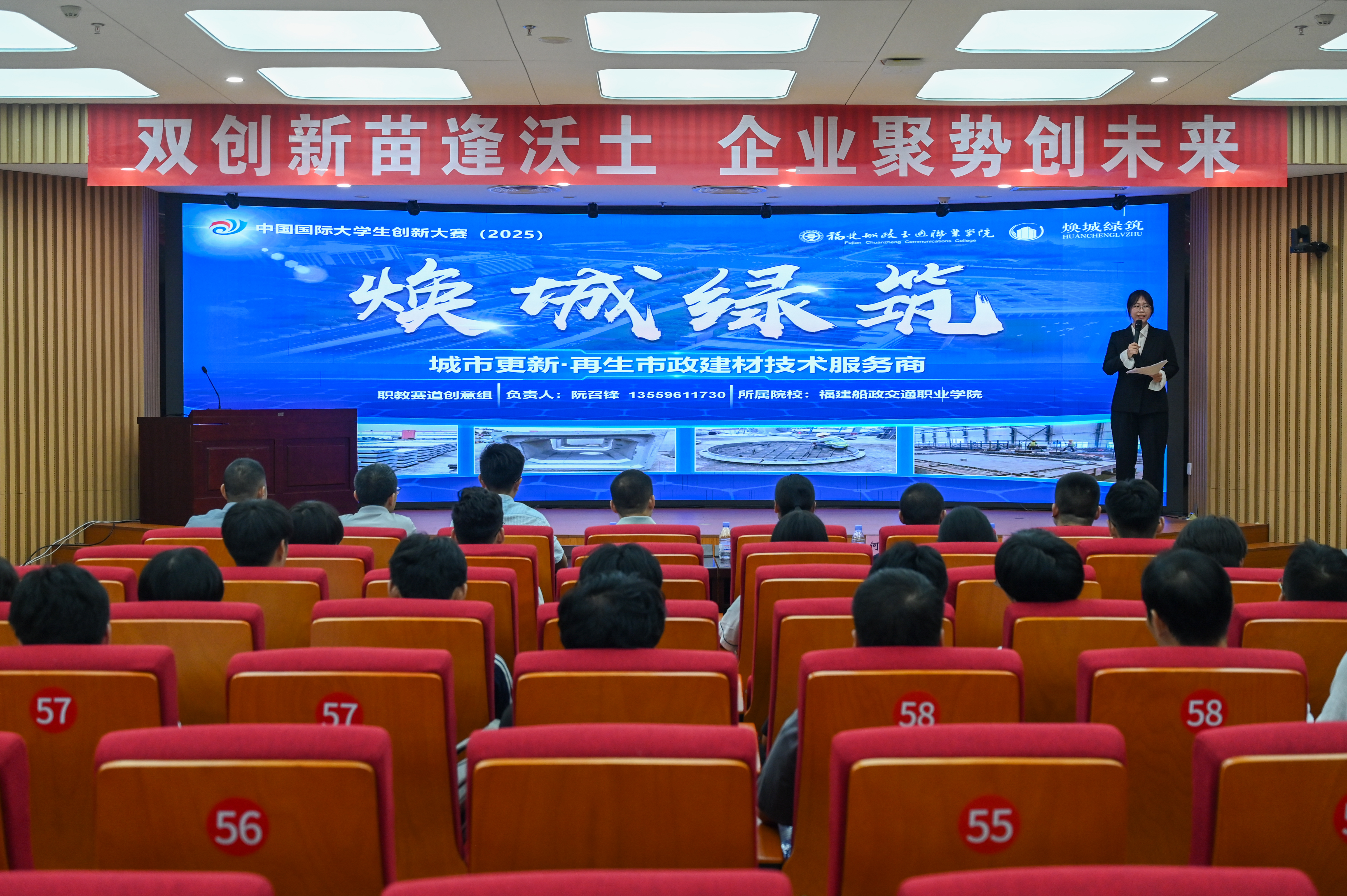 為了促進(jìn)優(yōu)秀參賽項(xiàng)目與政府、產(chǎn)業(yè)、資本等社會(huì)資源全方位對接,推動(dòng)大賽項(xiàng)目落地、孵化和融資,福建船政交通職業(yè)學(xué)院于2025年8月9日在學(xué)院藝新樓3樓舉辦大學(xué)生創(chuàng)新大賽(2025)優(yōu)秀項(xiàng)目資源對接活動(dòng),活動(dòng)特邀船舶制造、人工智能、道路橋梁、機(jī)械制造等多個(gè)領(lǐng)域的企業(yè)家與投資人參與。