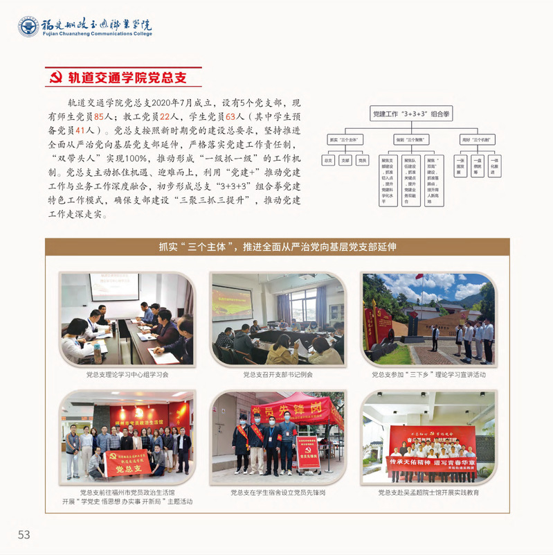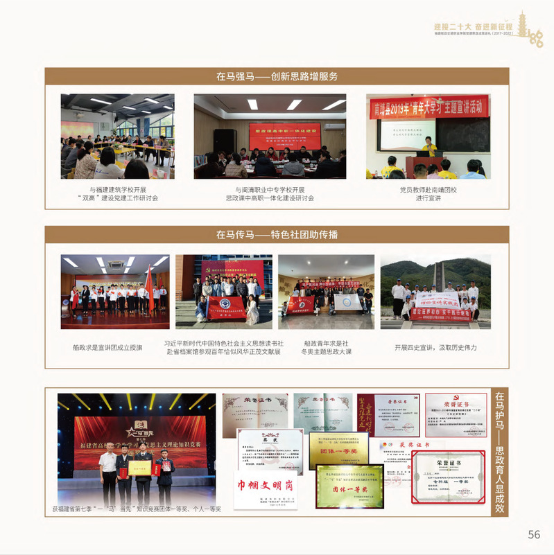 十九大以來,福建船政交通職業(yè)學院堅持以習近平新時代中國特色社會主義思想為指導,堅持社會主義辦學方向,深入貫徹黨的十九大和十九屆歷次全會精神,堅守“為黨育人、為國育才”的初心和使命,慎終如始推進學校黨的政治建設、思想建設、組織建設、作風建設、紀律建設、制度建設,黨的組織體系和學校治理體系相得益彰,黨建引領(lǐng)推動創(chuàng)新船政、質(zhì)量船政、文化船政協(xié)奏齊鳴,政治生態(tài)、學術(shù)生態(tài)、文化生態(tài)持續(xù)向好,辦學效率、辦學效能、辦學效益顯著提升!