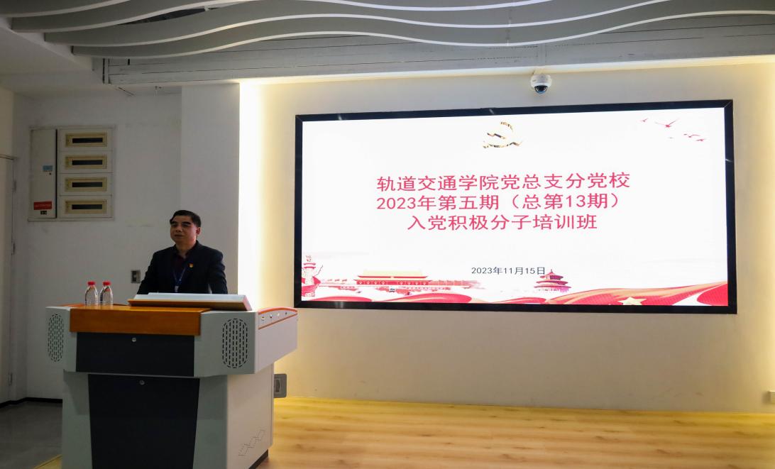 為深入學(xué)習(xí)貫徹習(xí)近平新時(shí)代中國(guó)特色社會(huì)主義思想和黨的二十大精神,切實(shí)做好入黨積極分子培養(yǎng)教育工作,提升發(fā)展黨員質(zhì)量,2023年11月15日,軌道交通學(xué)院黨總支書記-孫基在黨建館舉行第十三期入黨積極分子培訓(xùn)。
