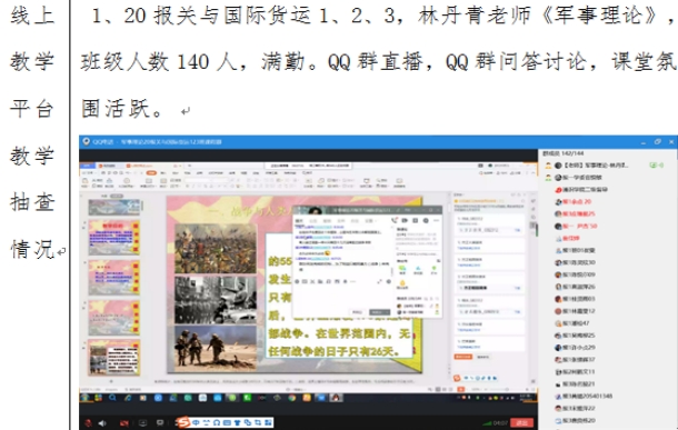 2、授課教師都能夠?qū)€上平臺技術(shù)、操作流程、交流互動(dòng)、教學(xué)資源使用等方面的掌控愈加熟練,對線上教學(xué)的各種優(yōu)勢愈發(fā)喜愛。學(xué)生學(xué)習(xí)整體上熱情較高,普遍認(rèn)為授課教師能備課充分,教學(xué)認(rèn)真,課件豐富,內(nèi)容容量大,對學(xué)生課堂簽到管理負(fù)責(zé),師生互動(dòng)方式靈活,學(xué)生參與度、活躍度高,教學(xué)效果良好。