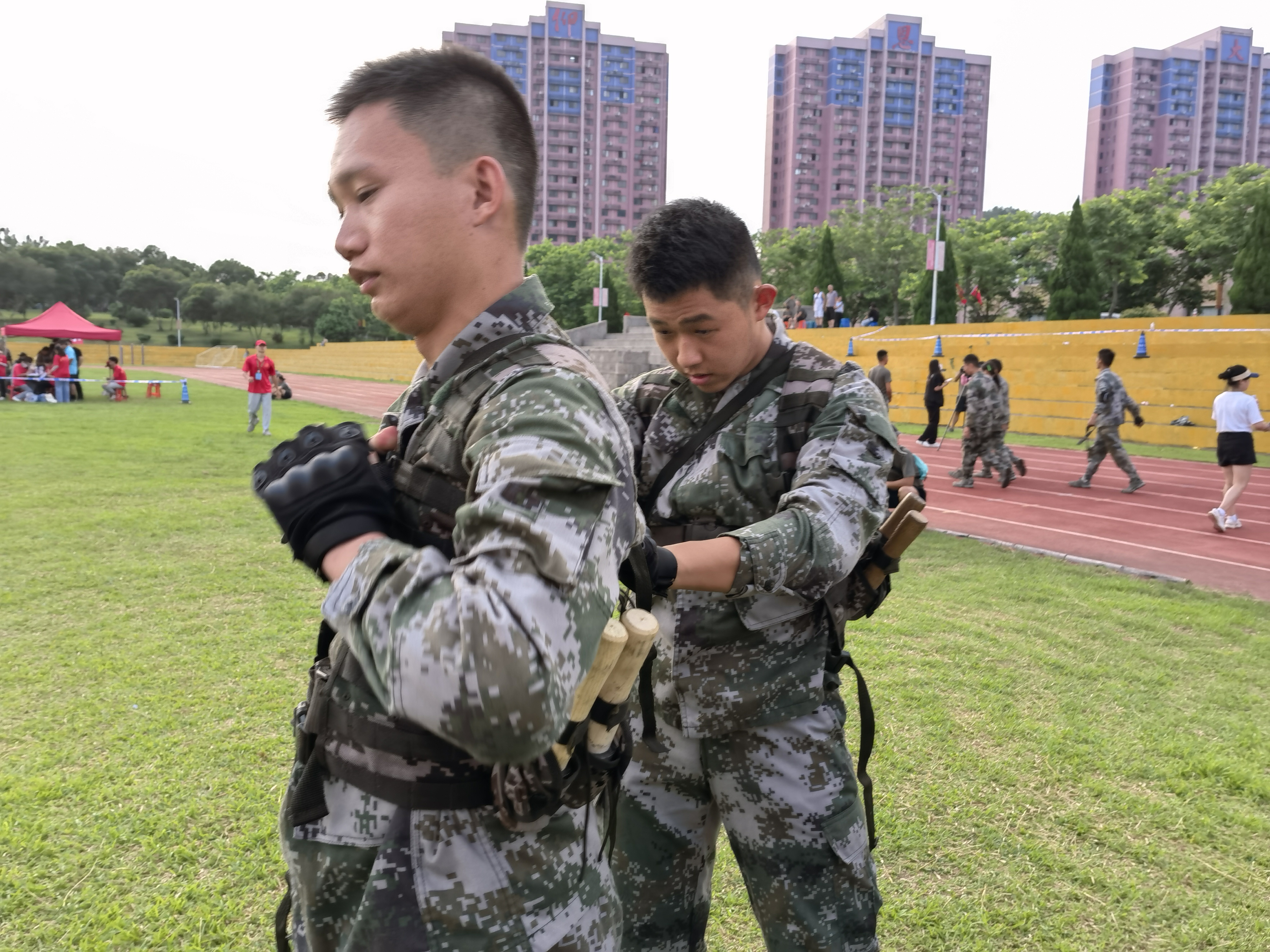 本屆比武活動(dòng)由通識(shí)教育學(xué)院組織參加,在校教務(wù)處、學(xué)工部及各學(xué)院的配合下,師生們頂著狂風(fēng)暴雨、烈日酷暑完成集訓(xùn)。學(xué)校領(lǐng)導(dǎo)對(duì)此次比武活動(dòng)高度重視,多次親臨訓(xùn)練現(xiàn)場(chǎng)看望參賽選手,了解軍事技能比武的集訓(xùn)備戰(zhàn)情況,鼓勵(lì)學(xué)生努力備戰(zhàn),自覺(jué)培塑更加強(qiáng)烈的國(guó)防意識(shí)、憂患意識(shí)和使命意識(shí),以更加飽滿的熱情投身軍事訓(xùn)練偉大實(shí)踐,不斷提高綜合國(guó)防素質(zhì),努力爭(zhēng)做擔(dān)當(dāng)民族復(fù)興的時(shí)代新人。