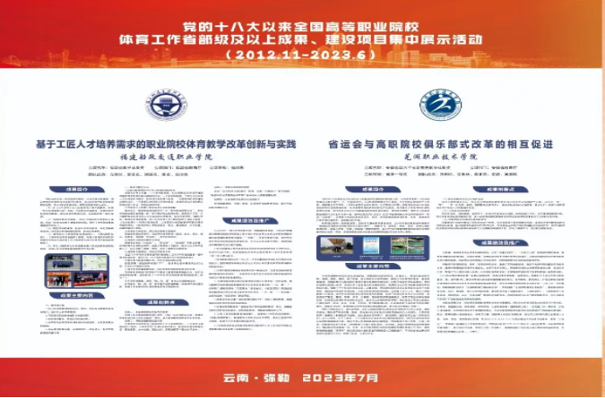 活動(dòng)選拔出黨的十八大以來(lái)全國(guó)高等職業(yè)院校學(xué)校體育工作獲得的省部級(jí)及以上“三教”改革成果和建設(shè)項(xiàng)目,經(jīng)過(guò)專(zhuān)家評(píng)選出30所優(yōu)秀教學(xué)成果交流,我校《基于工匠人才培養(yǎng)需求的職業(yè)院校體育教學(xué)改革創(chuàng)新與實(shí)踐》的教學(xué)成果入選本次成果征集活動(dòng)。