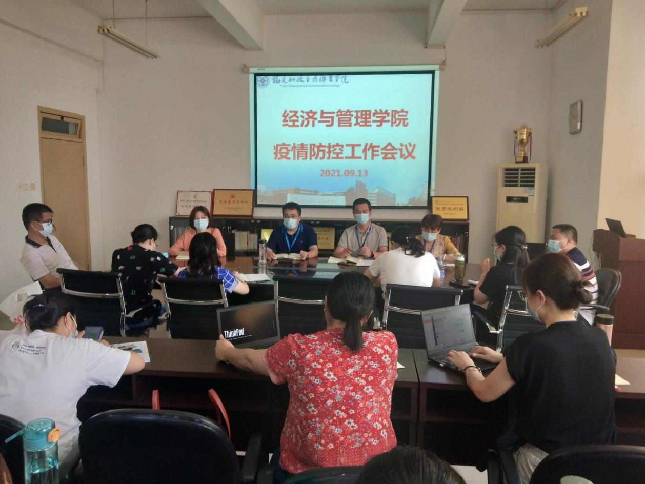 9月13日下午,經(jīng)濟與管理學(xué)院召開疫情防控工作會議,傳達了全省教育系統(tǒng)疫情防控視頻工作會議的精神指示,并部署我院相關(guān)工作。房曰榮院長主持會議,學(xué)院領(lǐng)導(dǎo)、各教研室主任、實訓(xùn)中心主任、辦公室主任、團委書記、全體輔導(dǎo)員、支部書記副書記出席會議。