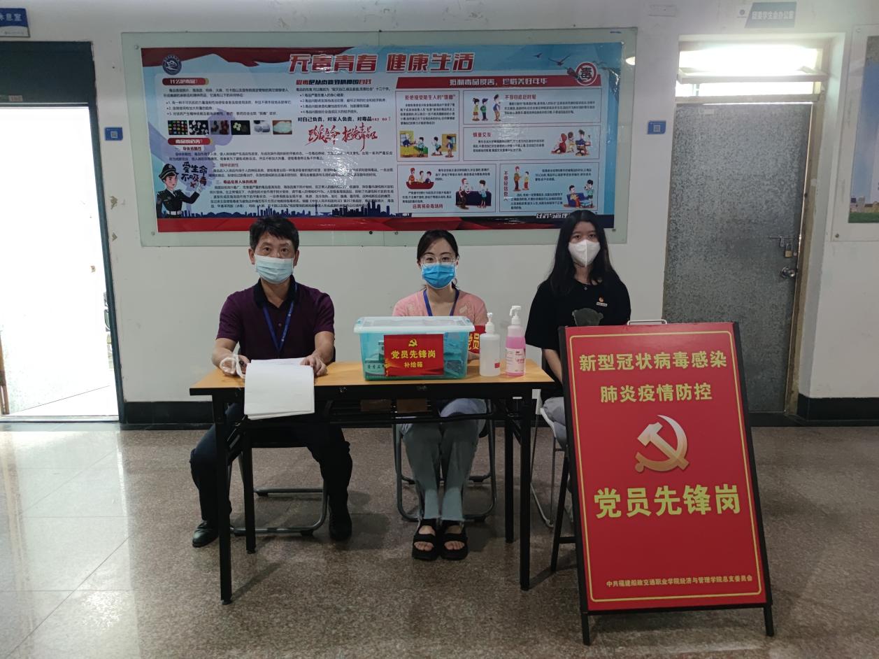 由經(jīng)濟(jì)與管理學(xué)院教師黨員組成的黨員突擊隊(duì),手持測(cè)溫槍于南區(qū)大門口,嚴(yán)格檢測(cè)來訪者體溫、仔細(xì)查看“雙碼”,切實(shí)保障我院每一位師生的健康。他們不畏疫情、不懼高溫,積極發(fā)揮黨員先鋒本色,他們用實(shí)際行動(dòng)踐行著。偉大的抗疫精神。