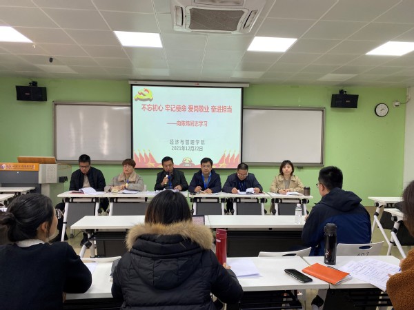為鼓勵(lì)引導(dǎo)學(xué)院全體黨員教師見賢思齊,愛崗敬業(yè)、立德樹人,發(fā)揮黨員的先鋒模范帶頭作用,12月22日下午,經(jīng)濟(jì)與管理學(xué)院在31#407開展了“不忘初心牢記使命愛崗敬業(yè)奮進(jìn)擔(dān)當(dāng)”——向陳煒同志學(xué)習(xí)的活動(dòng),追憶緬懷陳煒同志生為人師、歿如紅燭的感人事跡與高尚品質(zhì)。學(xué)院全體教職工參加了此次活動(dòng)?;顒?dòng)由黨總支書記俞素平主持。